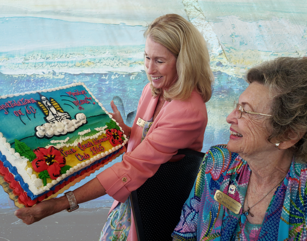 Congratulations to Marilyn Grigsby as she celebrates her 60th anniversary of being affiliated with the Cocoa Beach Woman’s Club. Sixty years ago, the CBWC felt that the idea of service to the community was worthy and credible, and for this reason we laid the foundation for a woman’s club in Cocoa Beach.